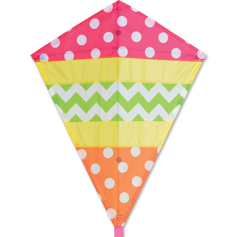 One of the most classic and recognized kite shape is that of the diamond kite. Our 25 inch Diamond Kites are adorable and affordable. They are framed with indestructible fiberglass, they are durable and easy to fly. Adults and children love the 25 inch Diamond's appeal both as gifts and as home decorations.