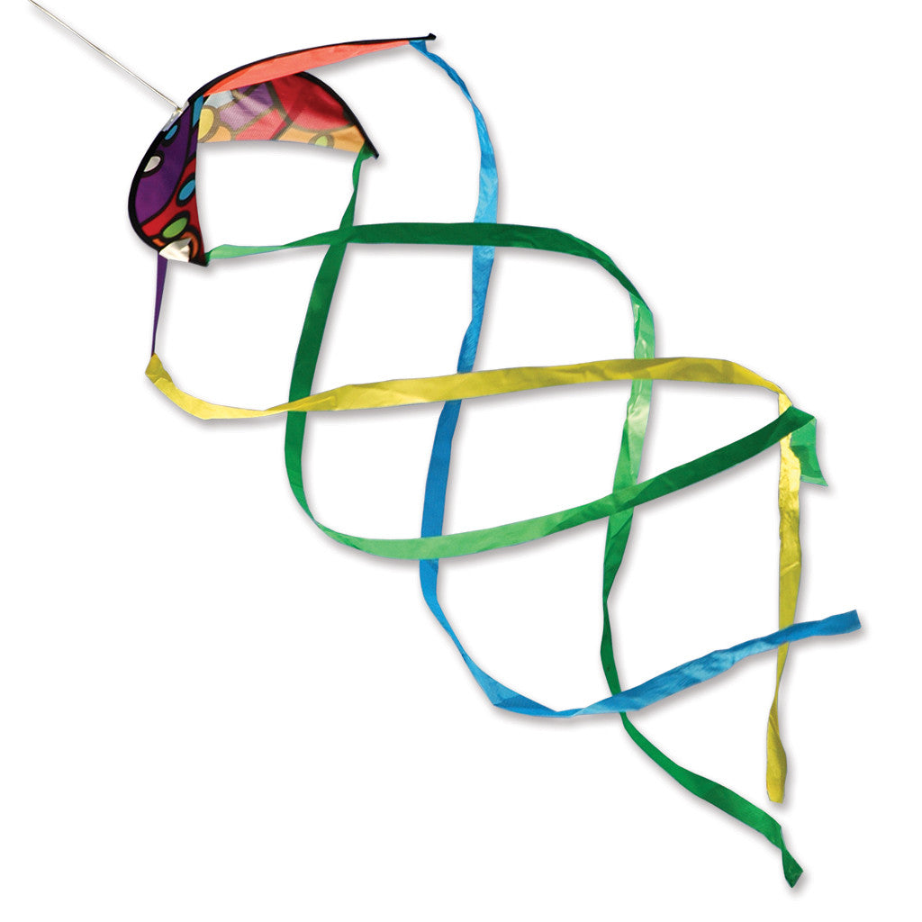 This unique wind-spinning device turns with the slightest breeze. Its flowing hypnotic helix effect looks great on kites as line laundry.