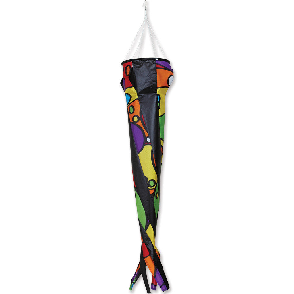 Wind Turbines are available in a broad range of sizes and produce a rotating spiral of color. They are inflated by the wind and rotate as air passes through their vented throats.