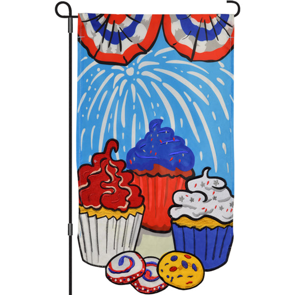 This flag features an extended design with colorful appliqué cutouts, detailed embroidery throughout the flag and fits on standard garden flag poles.