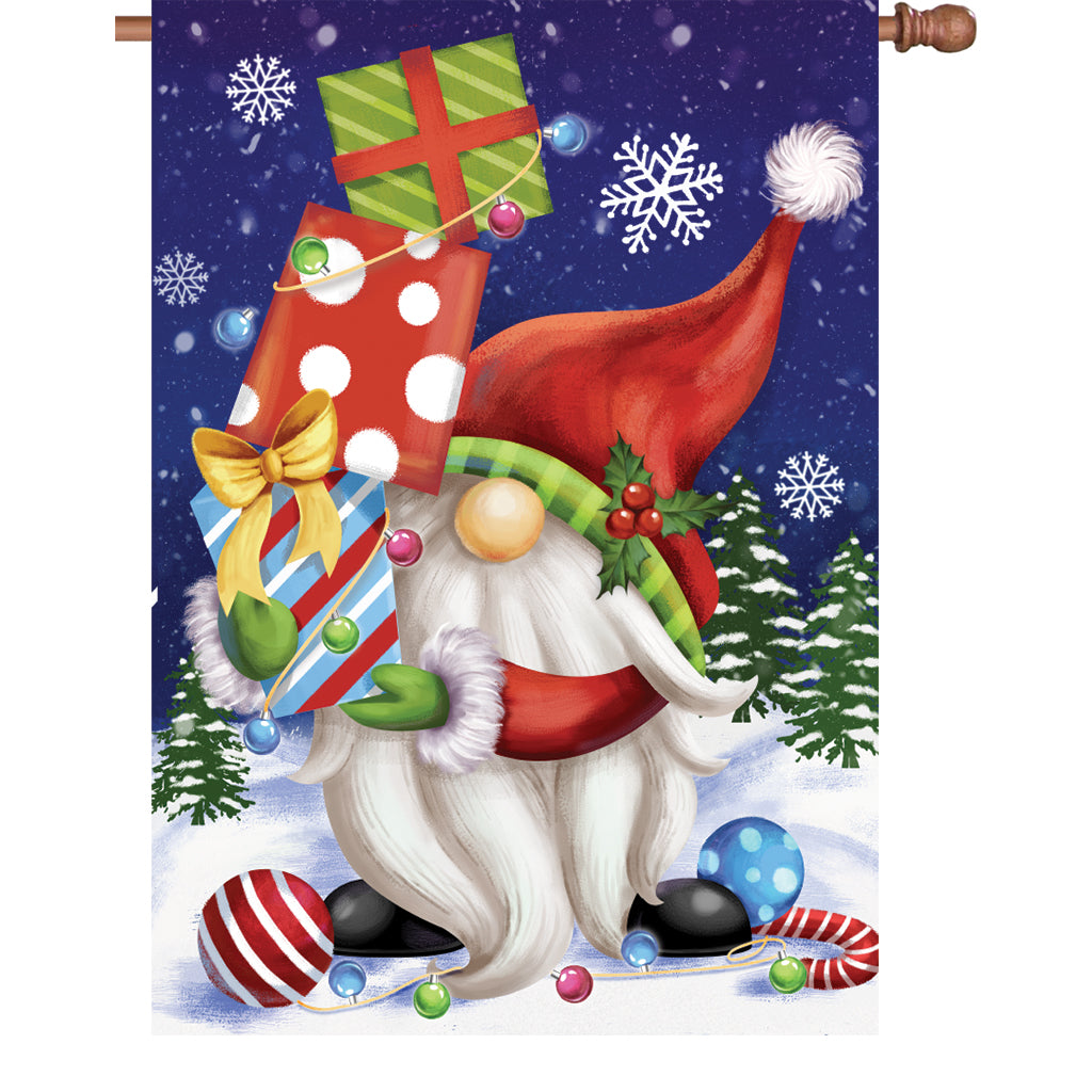 Flag shows a Santa Gnome carrying gifts.