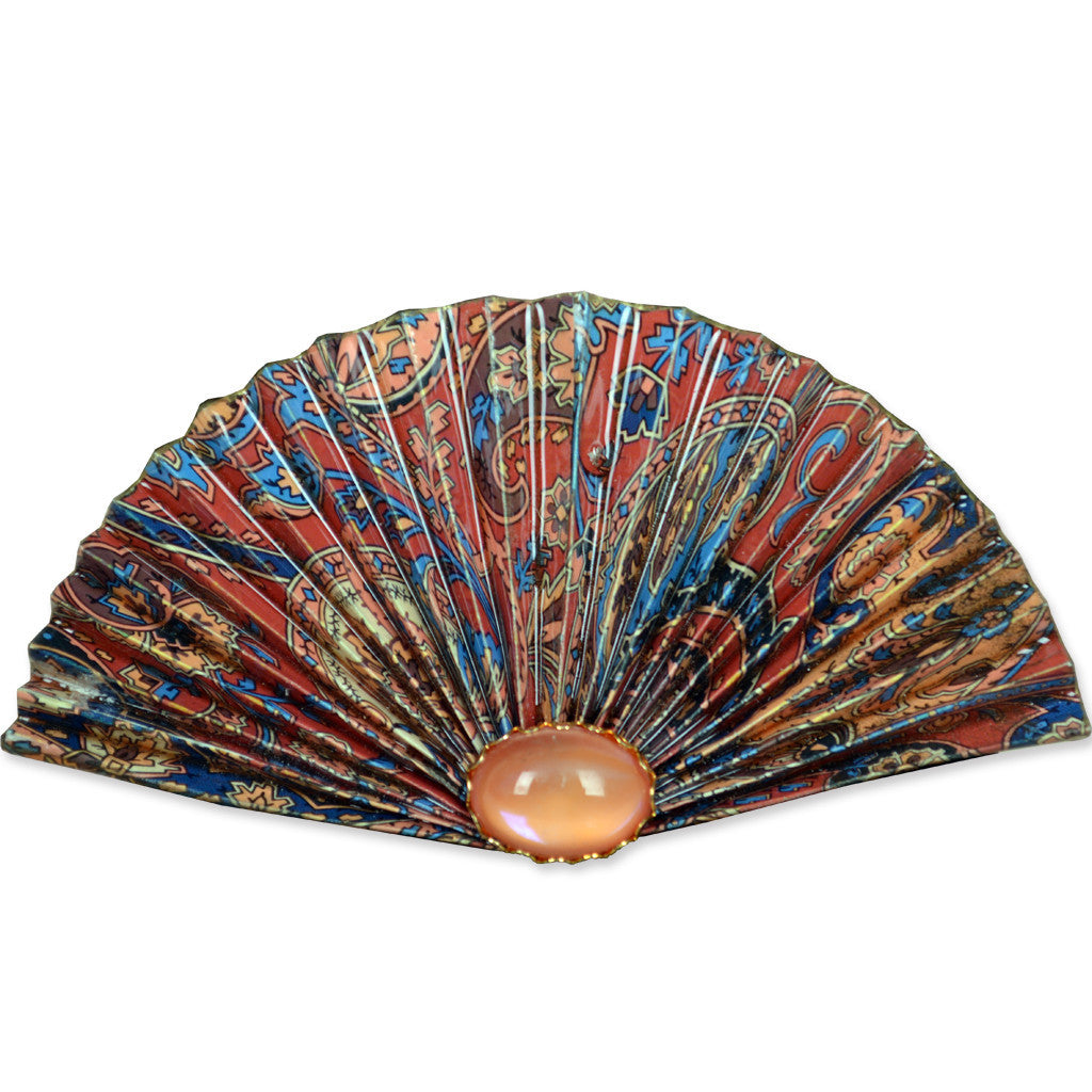 Add some sparkle and color to your outfit with this bold statement brooch! This mixed media pin will incorporate beautifully into both a vintage and contemporary style. Its paper construction makes it nice and lightweight.